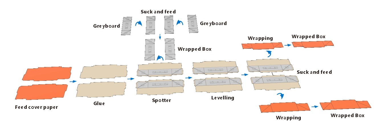 Dual-channel & Single-Channel side wing and case making machine is a collapsible box side wing forming equipment meticulously developed by our company, based on years of experience in the research and development of equipment such as rigid box gluing and positioning machines and hard cover machines. It is mainly suitable for production of side wings and case in collapsible boxes